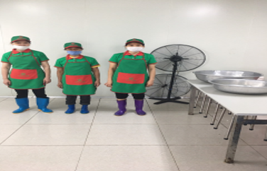 ❑Khử trùng dụng cụ nấu nướng và sử dụng phân biệt các loại tạp dề, thớt, gang tay theo từng công đoạn.